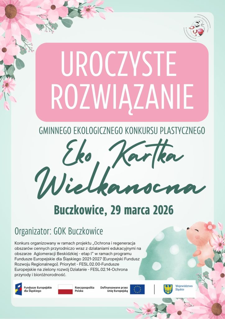 Gminny Ekologiczny Konkurs na Eko Kartkę Wielkanocną zorganizowany przez Gminny Ośrodek Kultury w Buczkowicach został rozstrzygnięty. Zasięg konkursu był gminny. Do konkursu swoje prace zgłosiło 290 uczestników. Łącznie wpłynęło 345 prac. Konkurs organizowany w ramach projektu „Ochrona i regeneracja obszarów cennych przyrodniczo wraz z działaniami edukacyjnymi na obszarze Aglomeracji Beskidzkiej – etap I” w ramach…